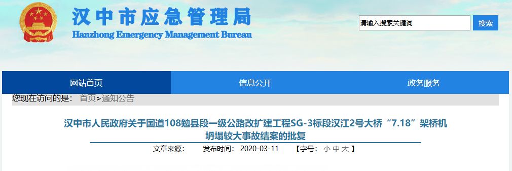 汉中市应急管理局网站发布了该起事故结案的批复和调查报告。
